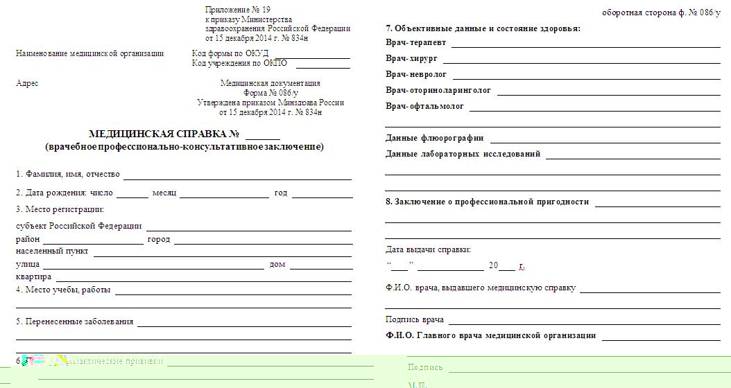 Форма 086/у должна соблюдаться достаточно строго, в противном случае справка может быть признана недействительной. Сведения о пациенте должны заполняться на основании его паспортных данных, а также медицинских документов и результатов проведенных обследований.